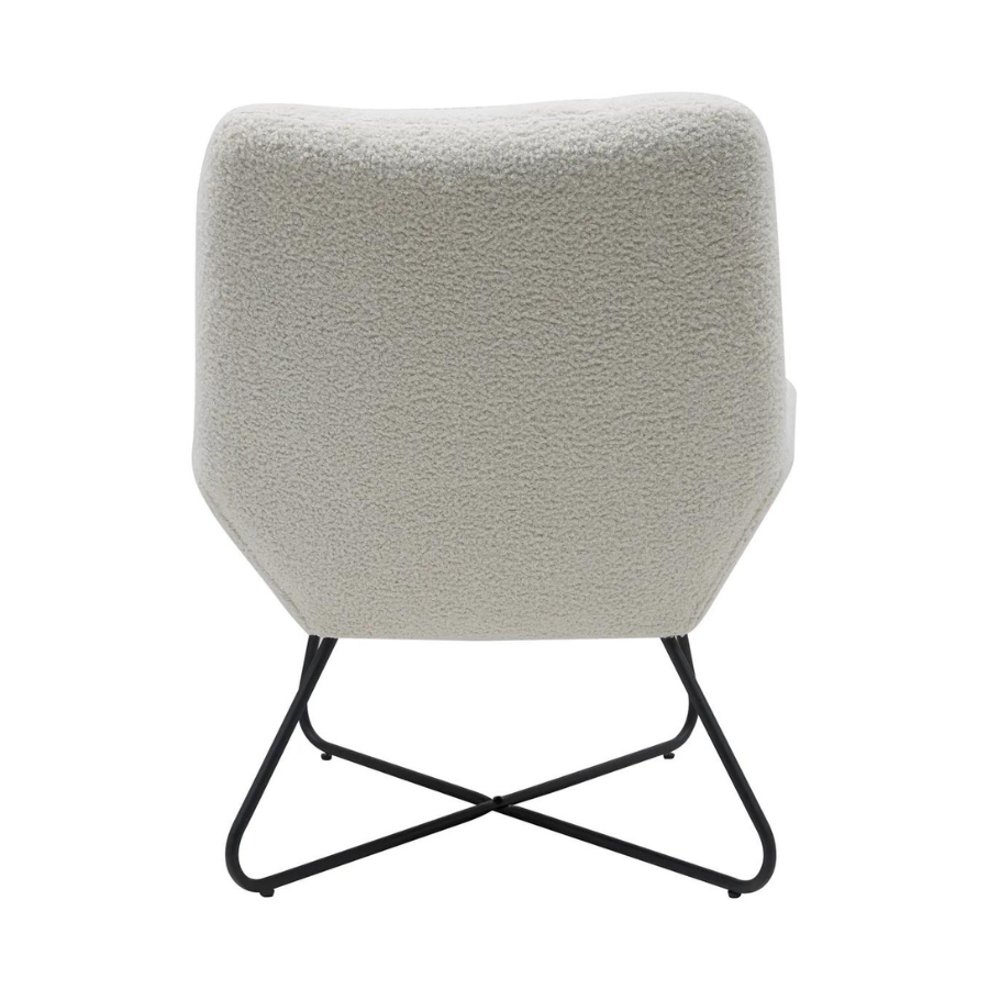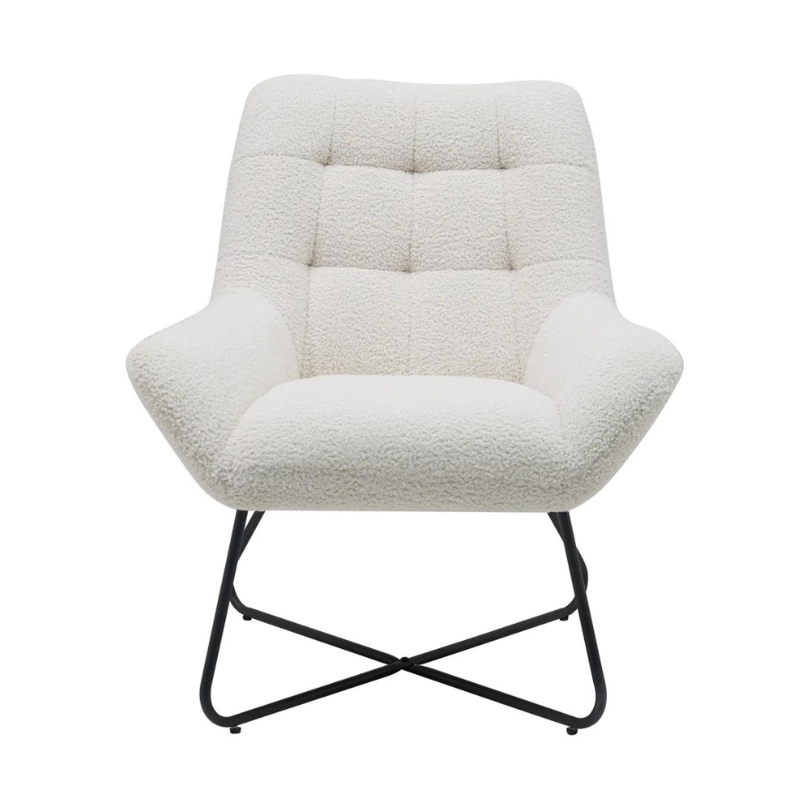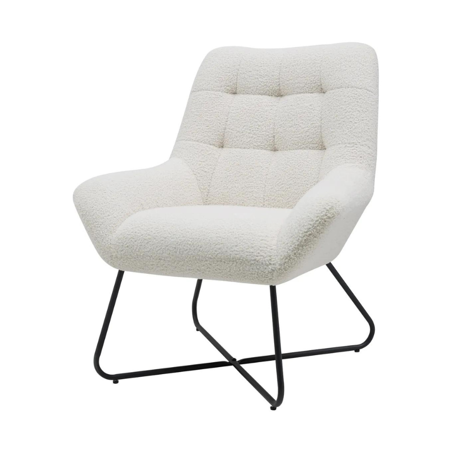 Matière : Polyester | Structure : contreplaqué, mousse polyuréthane | Revêtement : 100% polyester effet laine bouclette | Pieds : métal peinture époxy noire