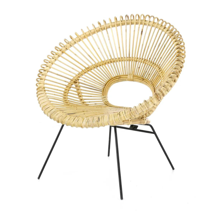 Matière : Rotin | Assise : rotin vernis | Pieds : métal, peinture en poudre